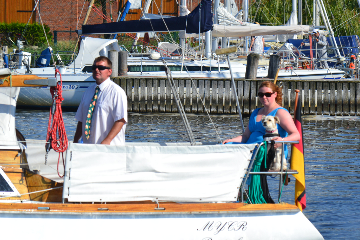 Es war ein riesen Spaß. Nicht nur, dass es für alle Anwesenden mal etwas ganz besonderes war, anzüglich zu segeln, war es auch für die diversen „Fremden“ ein – nennen wir es mal – außergewöhnlicher Anblick. Die ersten, die uns begegneten, gucken verdutzt. Und je mehr von uns so toll verkleidet mit den Booten um die Ecke kamen, um so mehr ernteten wir viel lächeln, staunen und auch Begeisterung. Man konnte sogar öfter den Daumen-hoch-Gruß sehen und einige heimlich fotografierenden Zeitgenossen beobachten…