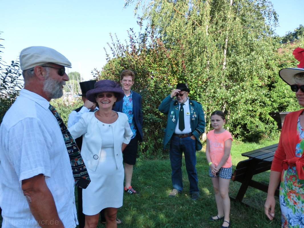 Alles in allem war es von der gemeinsamen Spazierfahrt, dem Sektempfang am Ufer der alten Neptun-Werft, der Ausfahrt Richtung Warnemünde, dem gemeinsamen Essen auf der vornehm gedeckten Tafel und dem gemütlichen Abend ein wieder mal sehr gelungenes Event, welches in dieser Art ganz sicher unter den Rostocker Vereinen – schon mal rein optisch – einzigartig war.
