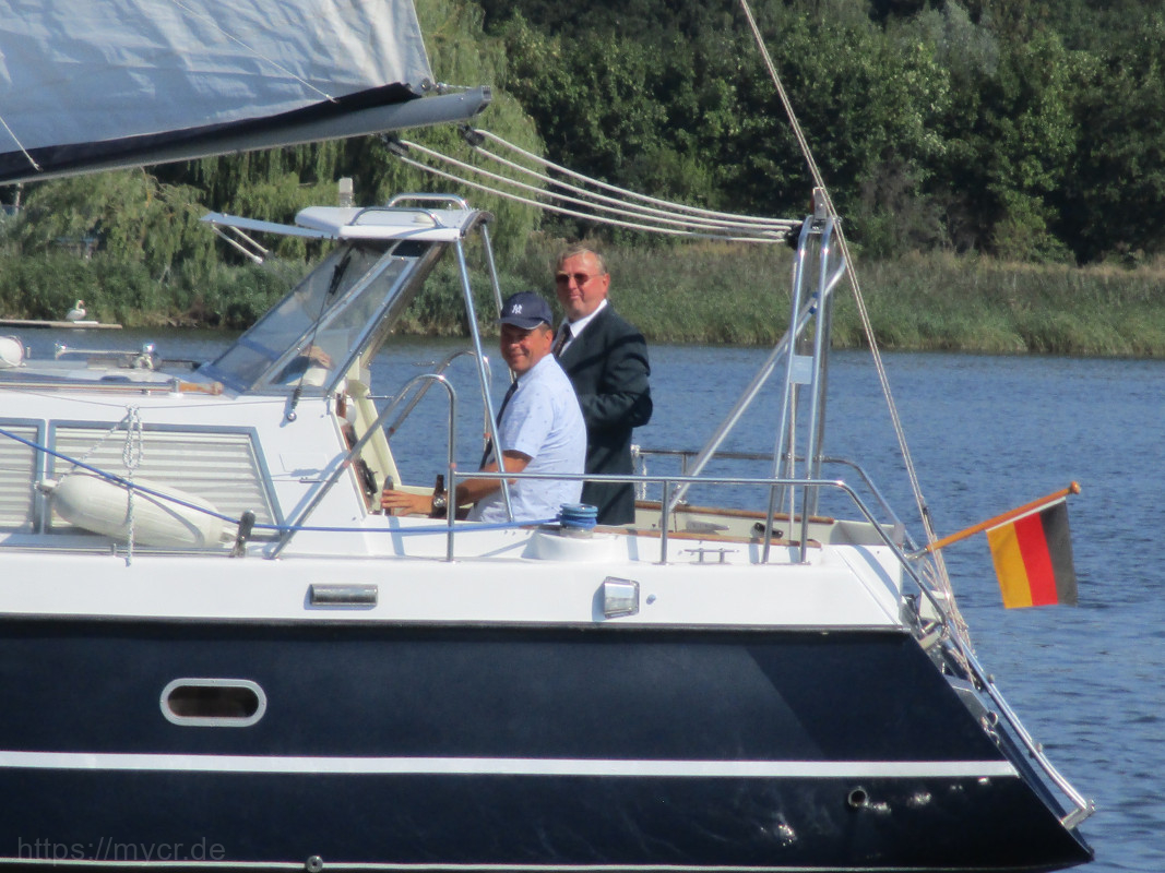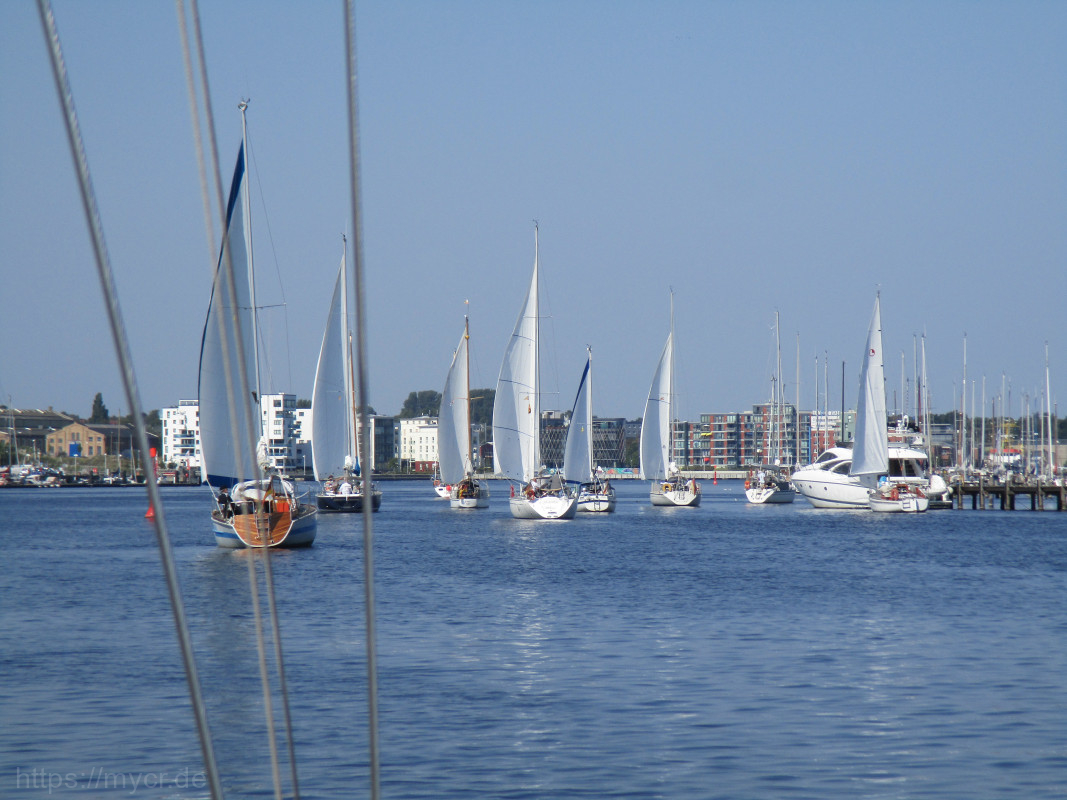 Das perfekte Wetter war gebucht. Strahlender Sonnenschein. Wind bei der Spazierfahrt zur Tonne 66 bei ca. 1,5 Bft. Und dann perfekter Wind bei der gemeinsamen Ausfahrt auf der Warnow. Viele Boote kamen in den „Regatta-Modus“.