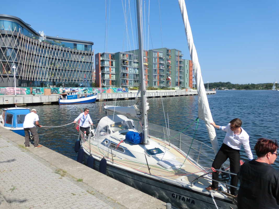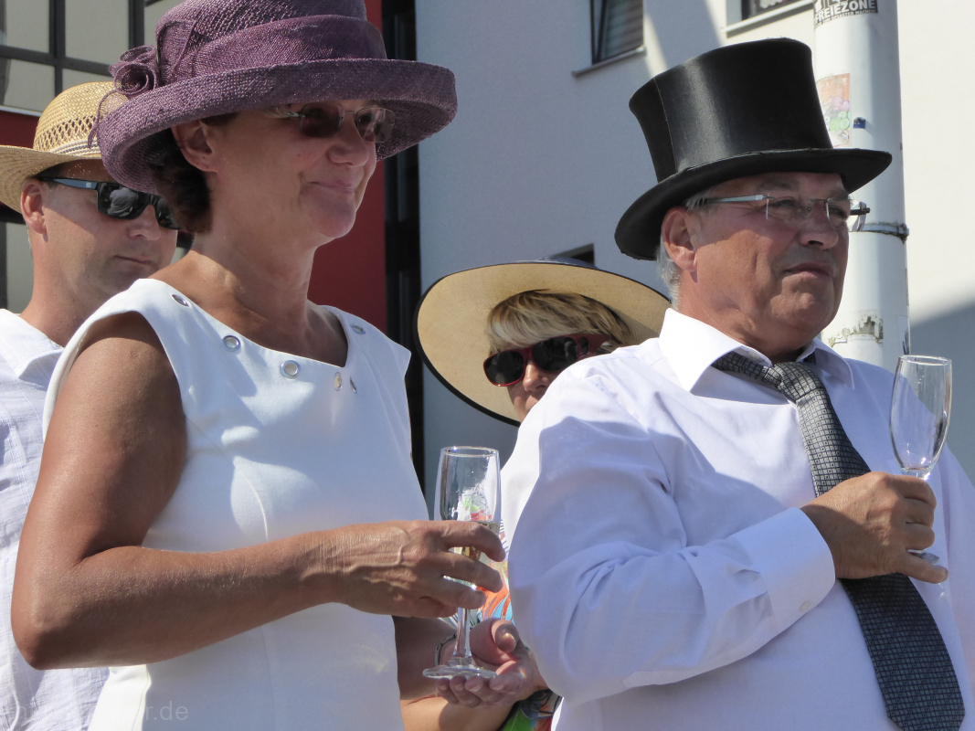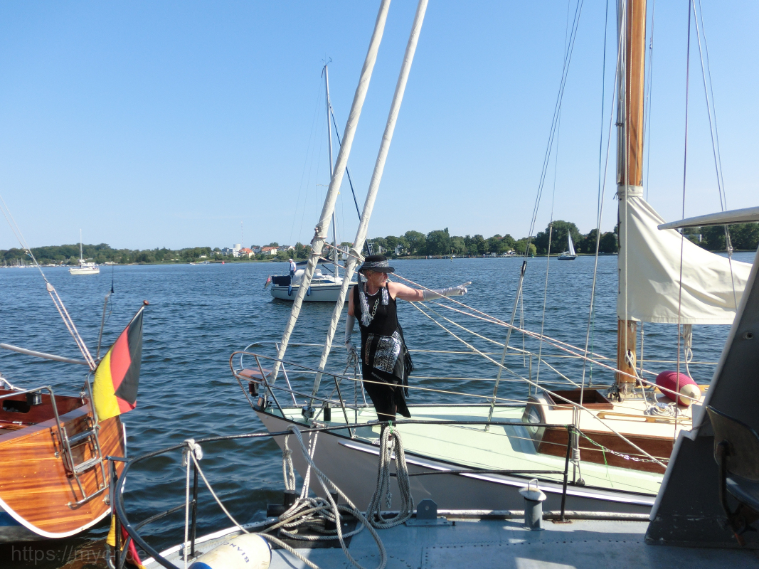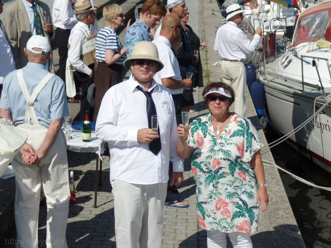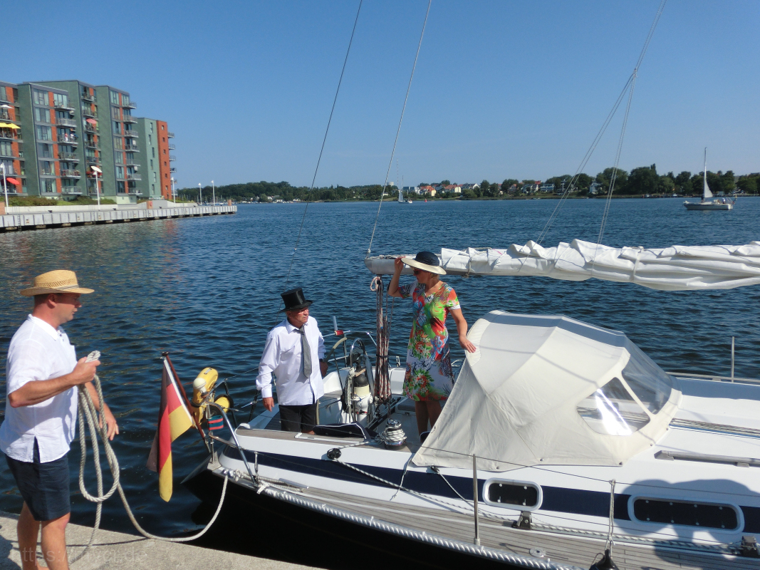 Es war ein riesen Spaß. Nicht nur, dass es für alle Anwesenden mal etwas ganz besonderes war, anzüglich zu segeln, war es auch für die diversen „Fremden“ ein – nennen wir es mal – außergewöhnlicher Anblick. Die ersten, die uns begegneten, gucken verdutzt. Und je mehr von uns so toll verkleidet mit den Booten um die Ecke kamen, um so mehr ernteten wir viel lächeln, staunen und auch Begeisterung. Man konnte sogar öfter den Daumen-hoch-Gruß sehen und einige heimlich fotografierenden Zeitgenossen beobachten…