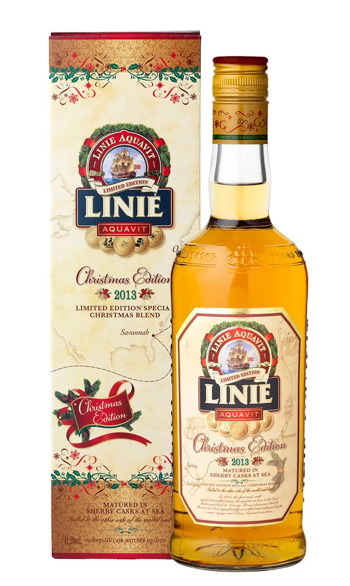 Der Ursprung des nordischen Aquavits wurde erstmals 1531 in einem Brief des dänischen Lord Eske Bille von der Burg Bergenhus an den norwegischen Bischof Olav Engelbrektsson aufgezeichnet. Der Linie Aquavit wird in ehemaligen Sherryfässern aus Eichenholz gelagert und reift in diesen ganze 19 Wochen lang. Dafür wird er auf Schiffe verladen, die oft den Äquator kreuzen. Der Äquator wird auch Linie genannt und daher stammt auch der Name.