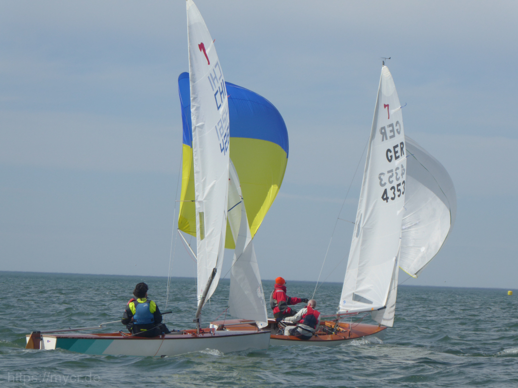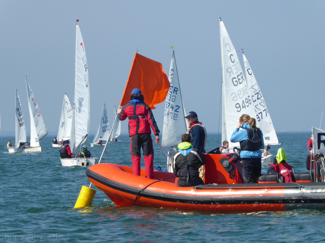 Am nächsten Morgen war es immer noch warm, allerdings war der Wind diesmal pünktlicher erwacht und so konnten wir zügig zwei weitere Rennen absolvieren. Das zweite Rennen brachte dann schon einige an seine Grenzen. Einige Piraten segelten dann, auch angesichts der noch frischen Wassertemperaturen, lieber auf Sicherheit und öffneten die Niederholer und verzichteten auf den Spinnaker. Auch bei den Cadets wurden die Spinnacker deutlich weniger. In beiden Bootsklassen zeigten die vorderen Boote jedoch deutlich, dass sie nun richtig Spaß hatten. Mit einem Verladewürstchen und schneller Siegerehrung im Anschluss, konnten alle pünktlich den Weg nach Hause zu Land oder auf dem Wasser antreten.