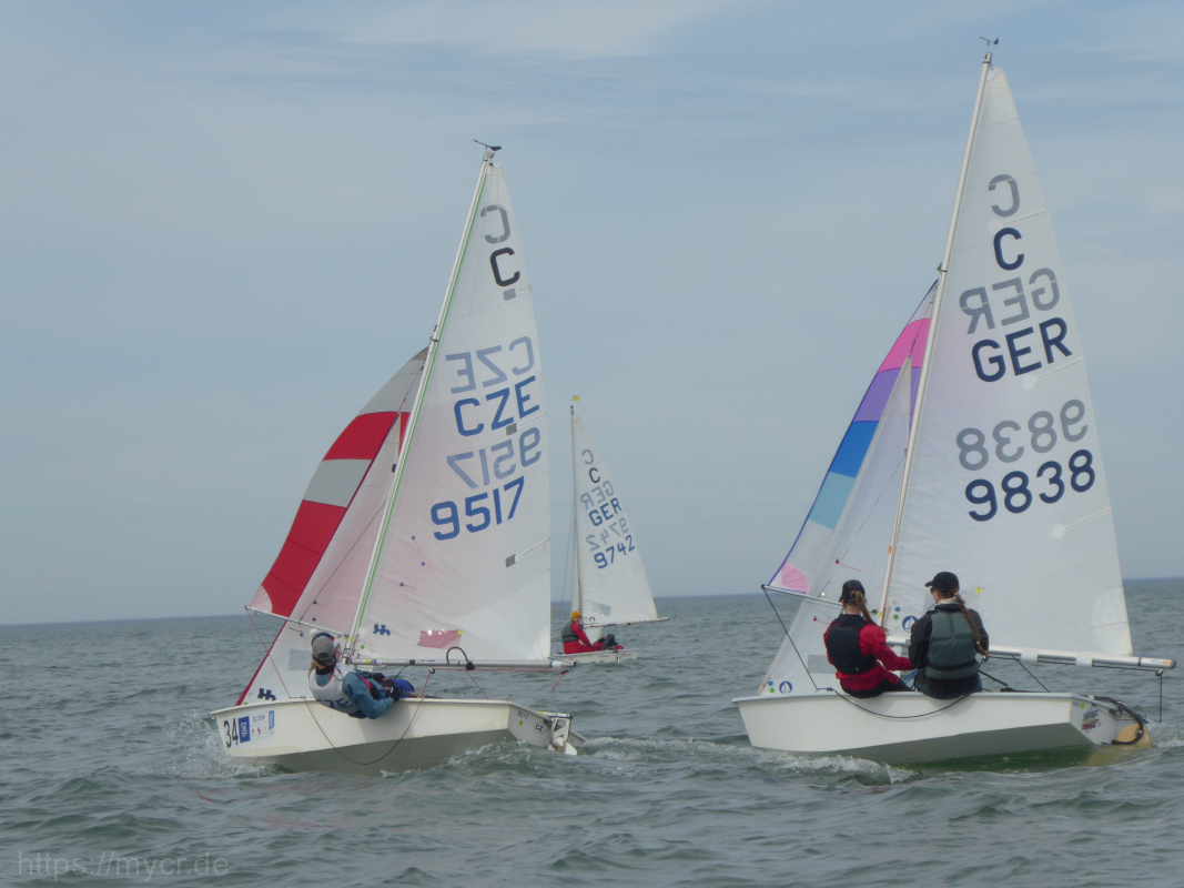 Bei den Cadets gewannen völlig verdient Tereza und Anna Marie Dítětová vom YC Neratovice aus Tschechien. Auch sie sind bereits seit mehreren Jahren dabei und nun endlich ganz oben auf dem Treppchen. Zweite wurden Vincent Mennenga und Anton Hansch, dritte Kai Zolondek und Eric Schwartz, beide vom Mecklenburgischen Yachtclub Rostock. Kai und Eric konnten damit ebenfalls den Sieg in der U15-Wertung für sich entscheiden.