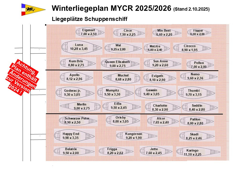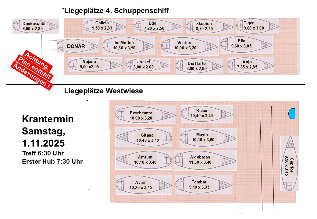 Nun steht der Herbst & Winter vor der Tür und die ersten Gedanken – wenngleich auch ungern – sind wegen der Zeitplanung nötig. Bitte setzt Euch mit den Terminen und auch den Liegeplätzen auseinander. Und Achtung: es gibt eine Reihe von Änderung.en zu 2024/2025.