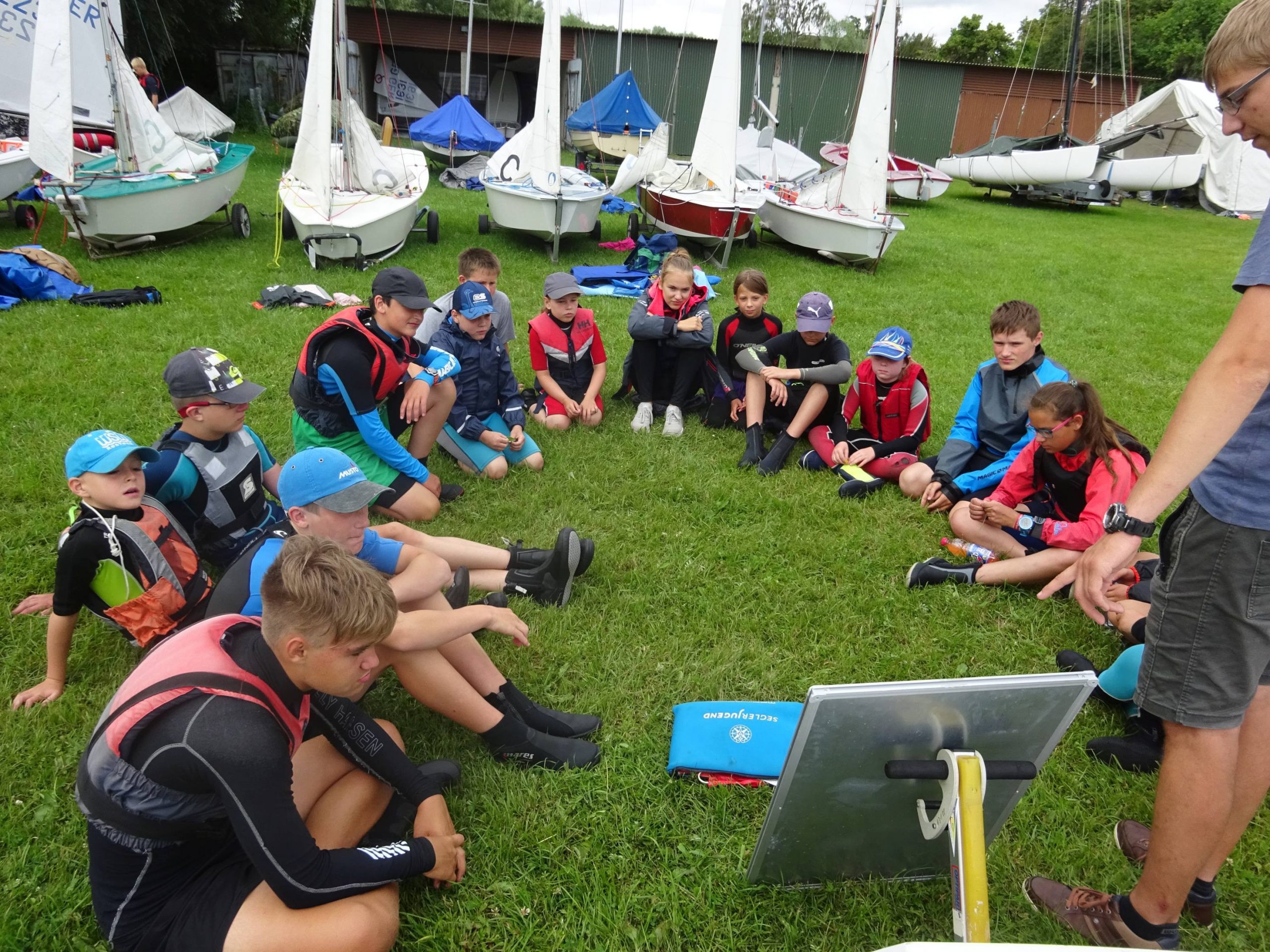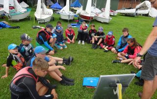 Das Sommerferienlager unserer Jugendabteilung auf dem Gelände des Segelclubs in Hohen Viecheln hat begonnen. Wir sind wieder in unseren großen Mannschaftszelten untergebracht und das Frühstück und Abendessen organisieren wir selbst. Vormittags und Nachmittags geht es auf das Wasser und auch der Spass kommt bei tollem Sommerwetter nicht zu kurz. Gesegelt wird auf neun Cadets (ein_e junge_r Vorschoter_in und ein erfahrene Steuerfrau oder Steuermann) und vierzehn Optimisten. Das
